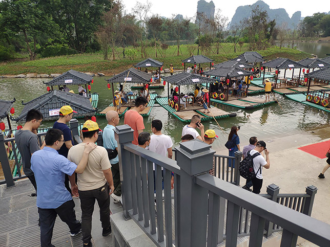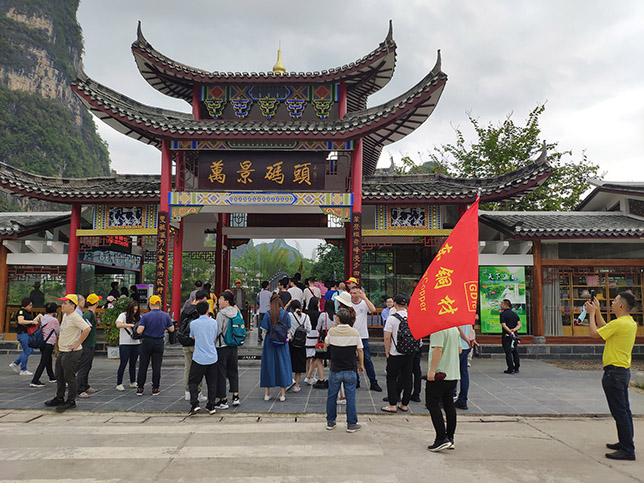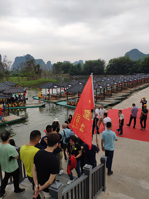 到達(dá)桂林第一站是桂林陽朔著名景點(diǎn)-遇龍河的萬景碼頭。一到站當(dāng)然是來一張團(tuán)體合照留念啦!凝心聚力,再創(chuàng)輝煌!為了我們國東的未來,為了我們的未來,努力奮斗!加油!