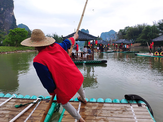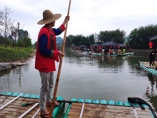 出發(fā)!艄公吆喝一聲,發(fā)力支起竹竿一撐,竹筏便緩緩?fù)幸苿印?/span>