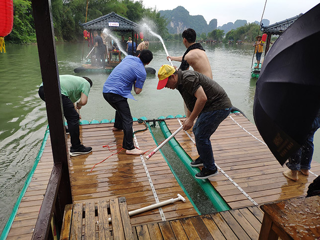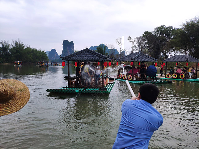 當(dāng)竹筏進(jìn)入水槍射擊范圍內(nèi),就不能袖手旁觀嘍,參與其中才能領(lǐng)略到個中樂趣。